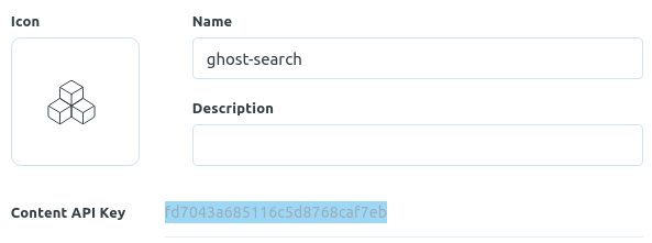 A custom integration key was needed to connect the Content API with our Ghost host. We are only interested in the Content API key.